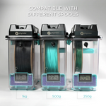 Le PolyDryer est composé d'une boîte hermétique et d'une base permettant d'effectuer le séchage. Vous pouvez donc utiliser une même base pour de nombreuses box. Vos filaments sont ainsi toujours prêts à être utilisés.