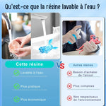 ♻️ IMPORTANT : L’eau de nettoyage contenant de la résine ne doit pas être jetée dans l’évier — laissez-la décanter, faites durcir les résidus puis apportez-les en déchetterie / point de recyclage adapté.